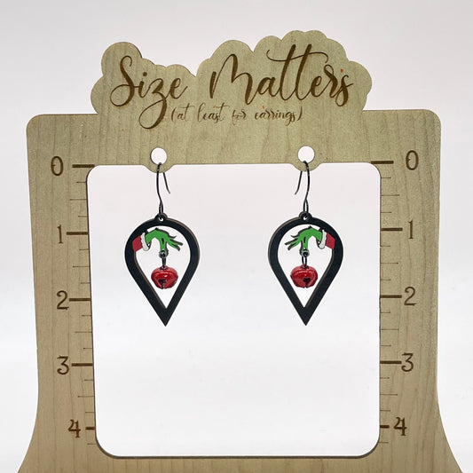 Grinch Hand Drop with Jingle Bell Teardrop Dangle Earrings