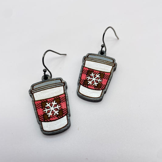 Winter Coffee Cup Drop Dangle Earrings