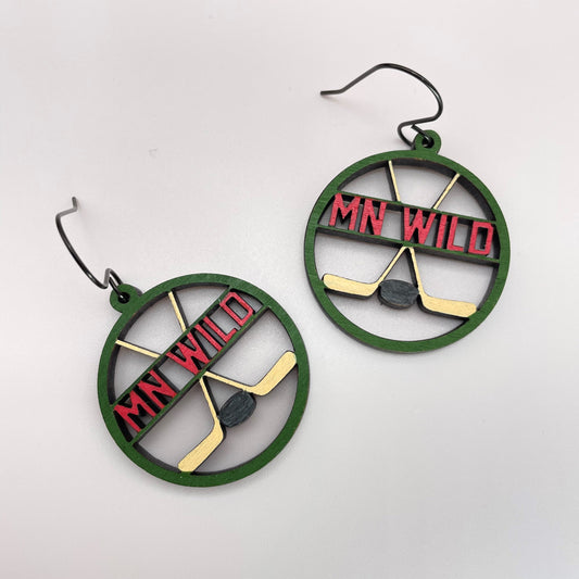 MN Wild Hockey Circle Drop Dangle Earrings