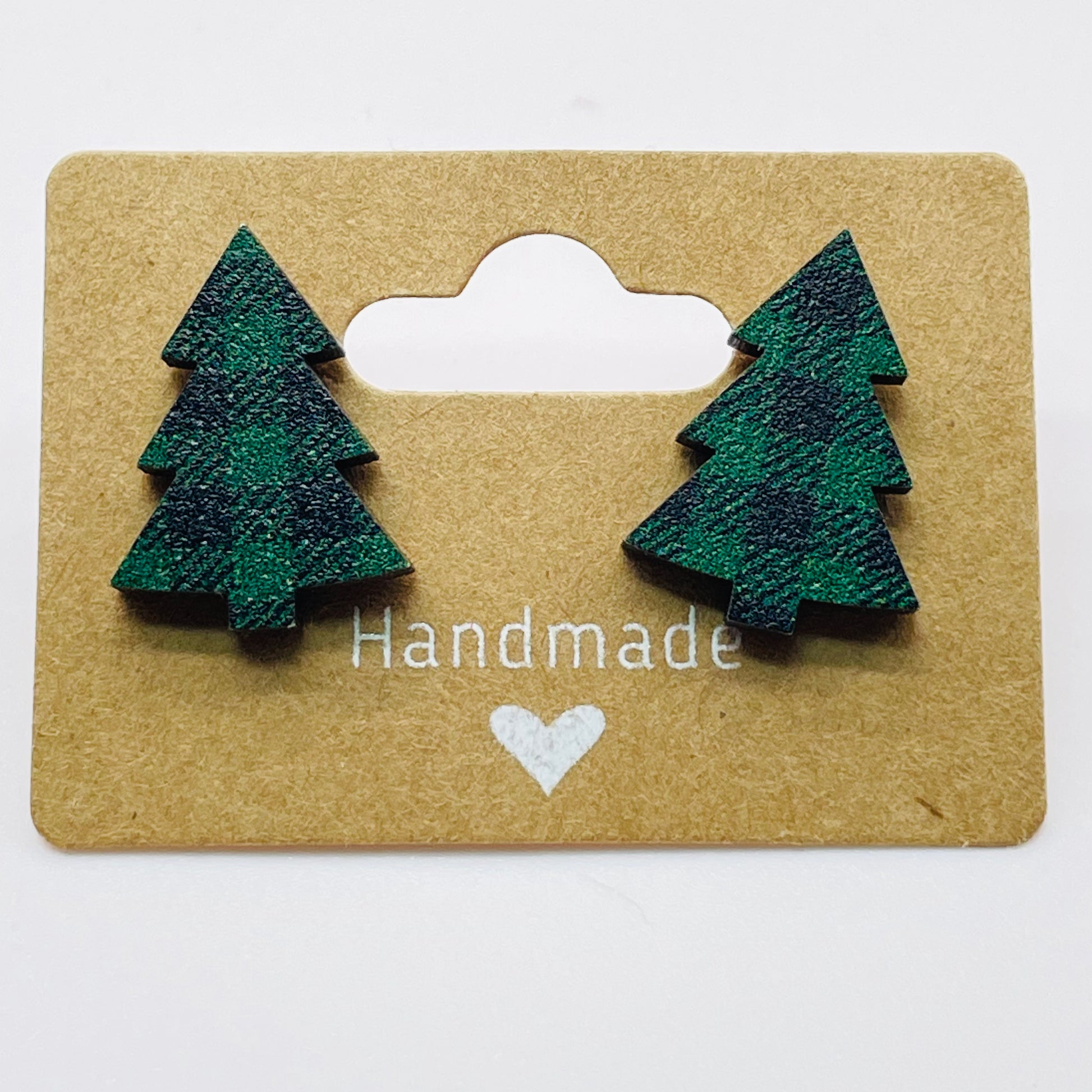 Green Buffalo Plaid Tree (Large) Stud Earrings