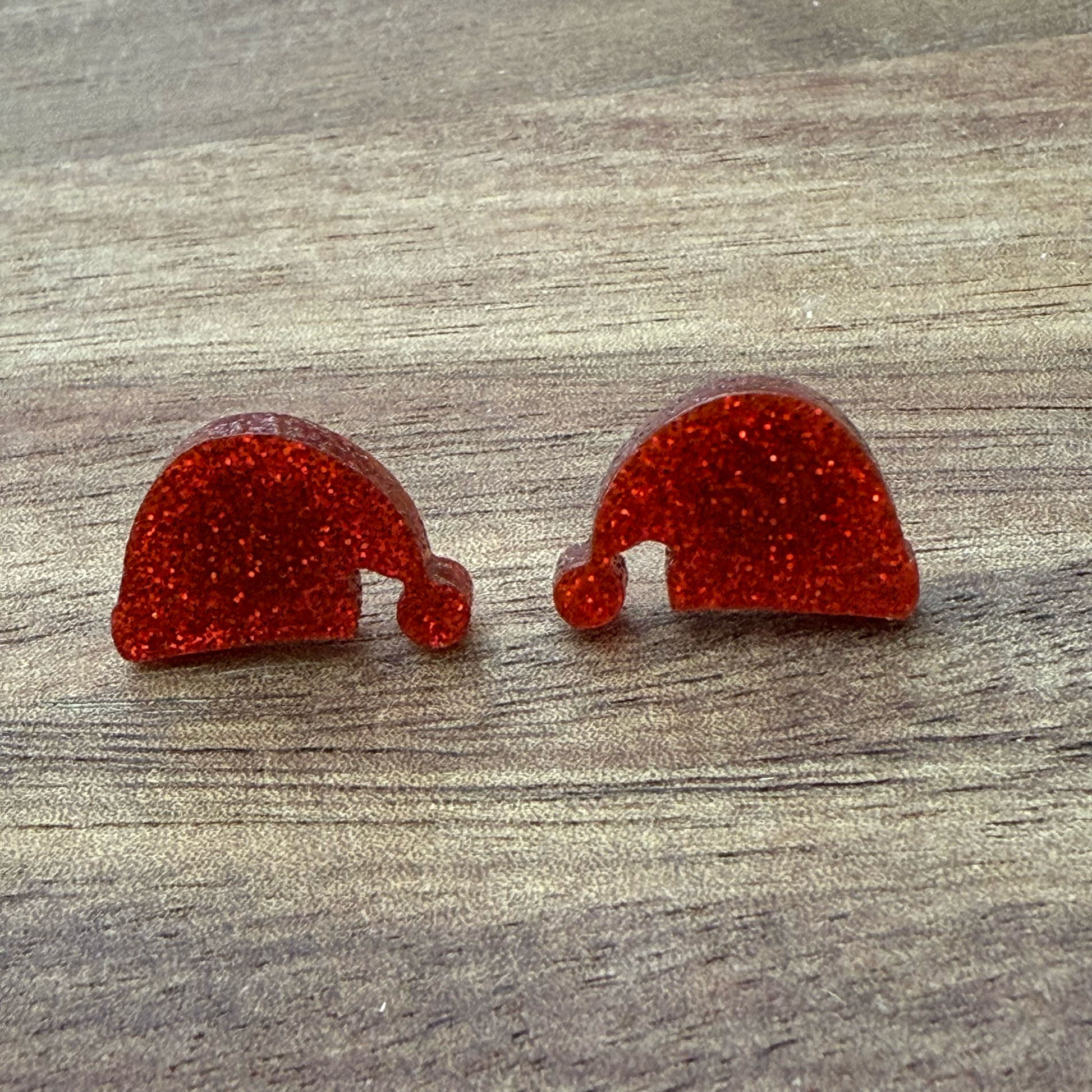 Red Glitter Santa Hat Acrylic Stud Earrings