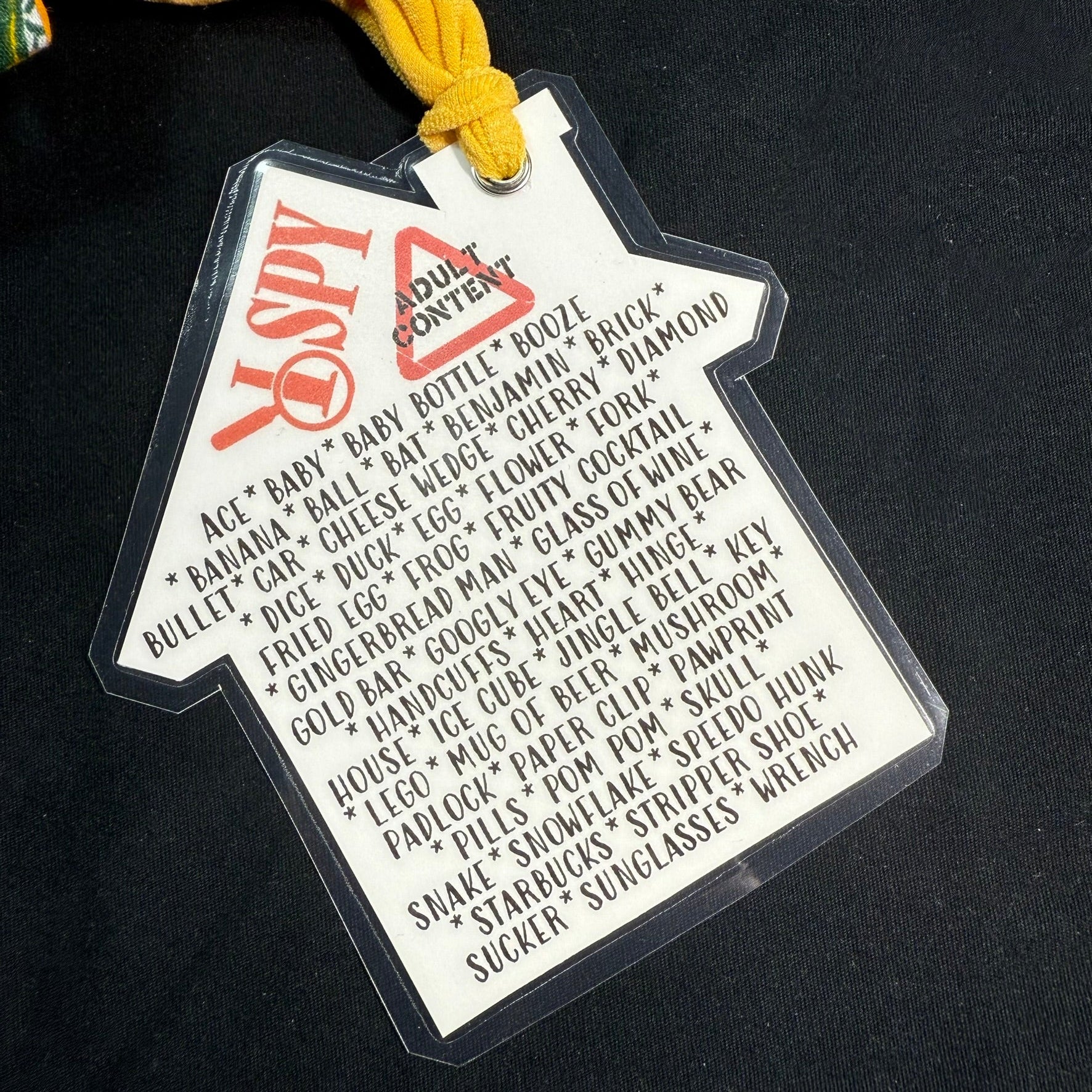 **because of the adult themed nature of some of the items within the bag, this version is not recommended for kids! Please see our other versions - the original iSpy bag, iSpy tube or our new Micro Mini iSpy bag version!!**